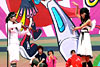 原来动漫不止用来看,游戏不仅买来玩,还可以用来扮。来自重庆的21岁女孩小童穿上动画“幸运星”里面的拉拉队装,戴上蓝色的假发,把自己打扮成动画中的一员,跳起拉拉队舞。今年,她将去日本留学,学习有关动漫业的知识,“希望可以参加在日本举行的世界Cosplay大会(World Cosplay Summit)!”小童笑着说。